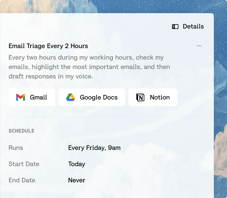 Transform plain English into powerful workflows and effortless automations. Just describe what you need.