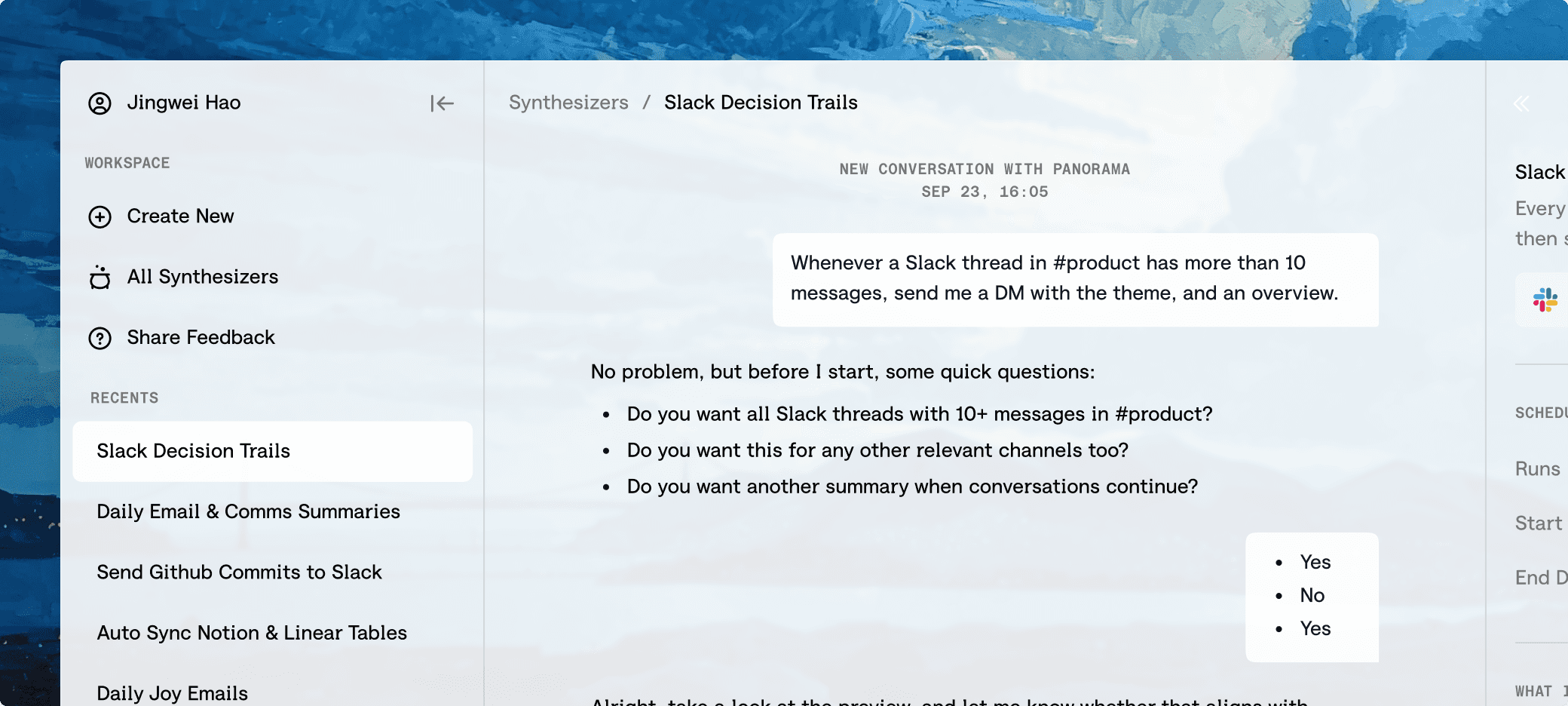 More time in flow, zero time on follow-ups. Panorama handles the stuff between commits so you’re free to think, build, and ship.